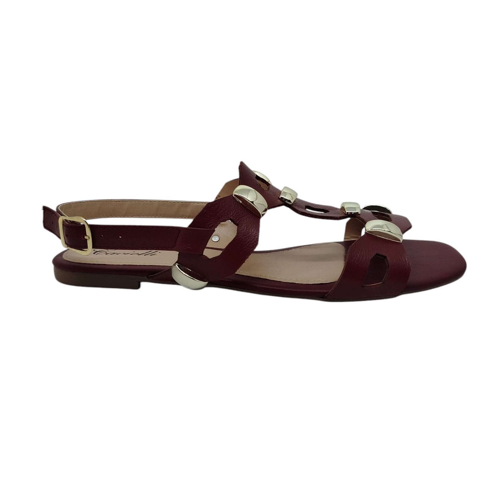 Sandália rasteira em couro.